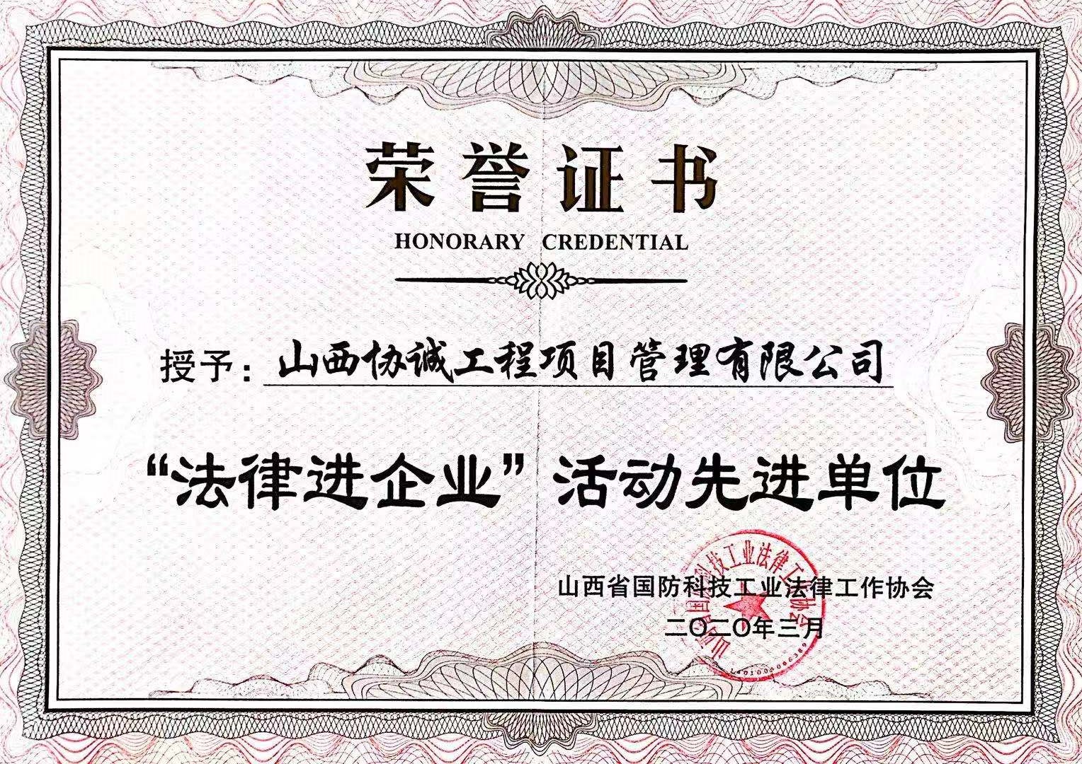 公司榮獲“法律進企業(yè)”活動先進單位獎