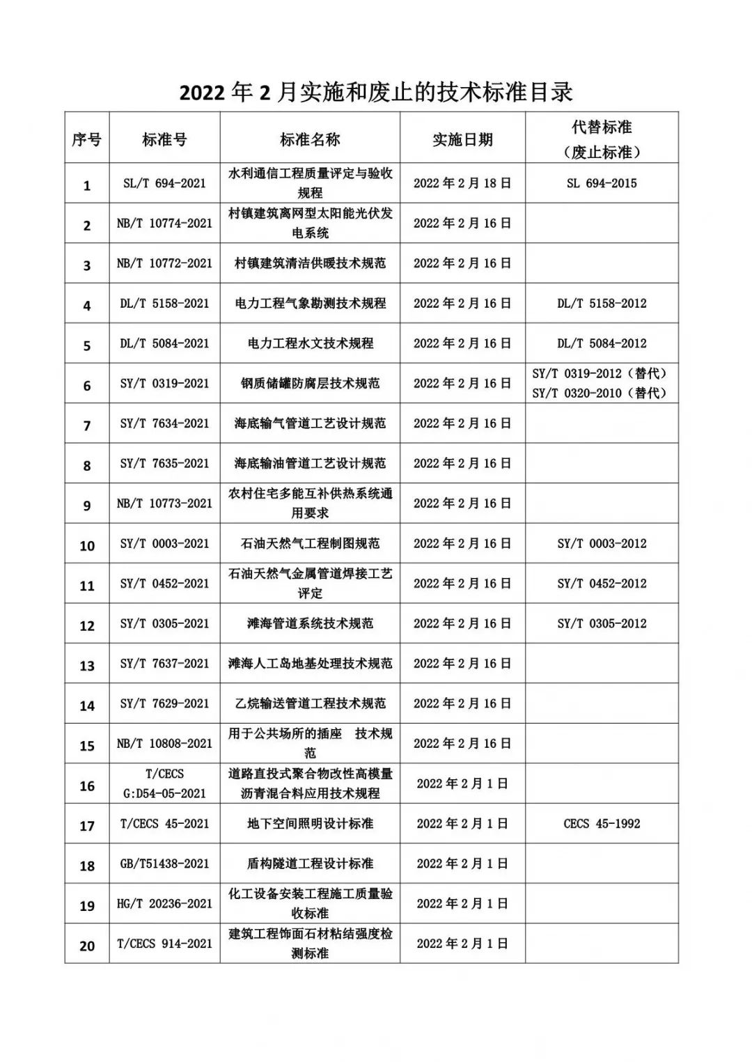 2022年2月實(shí)施和廢止的技術(shù)標(biāo)準(zhǔn)目錄