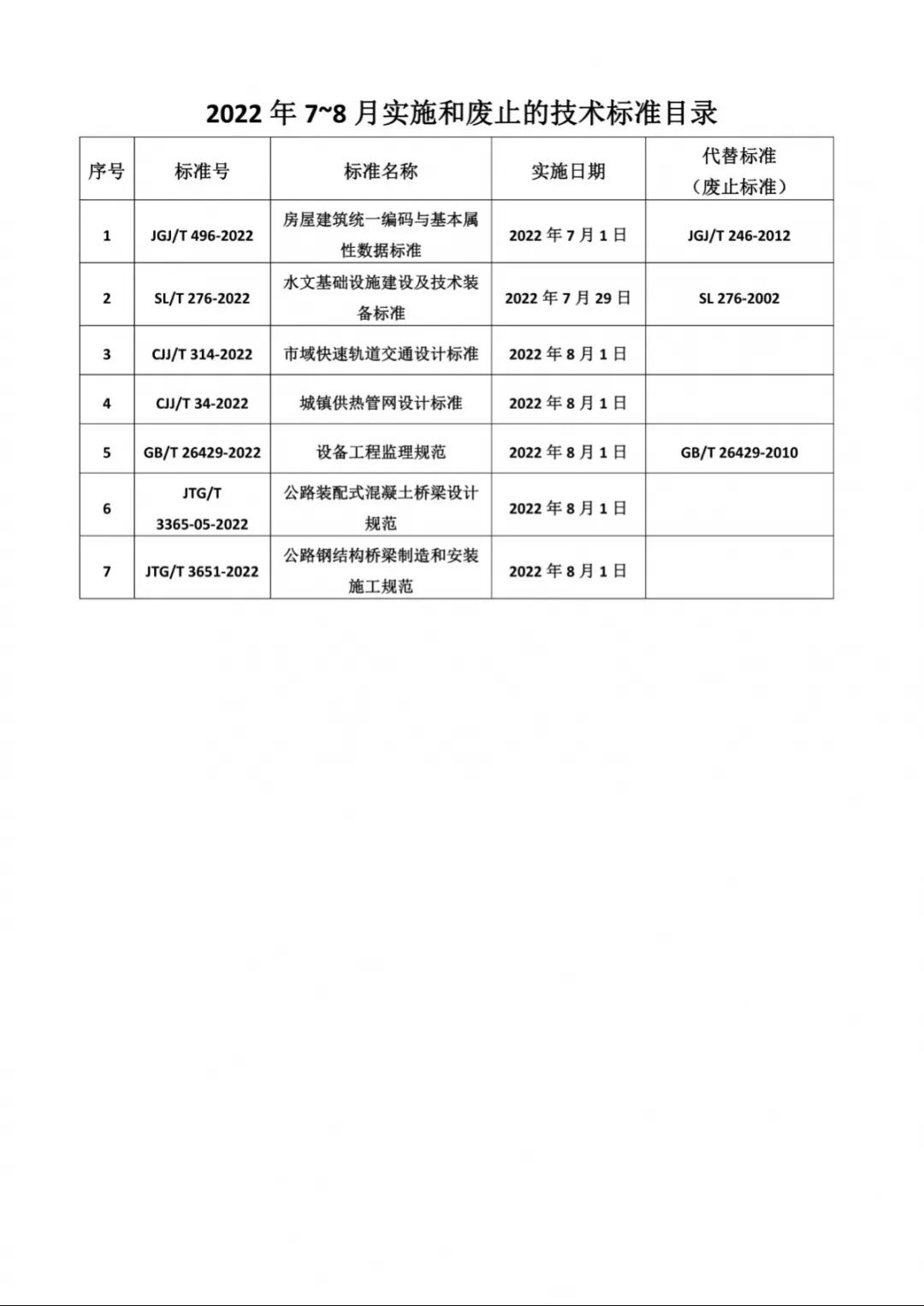 2022年7~8月實施和廢止的技術(shù)標(biāo)準(zhǔn)目錄