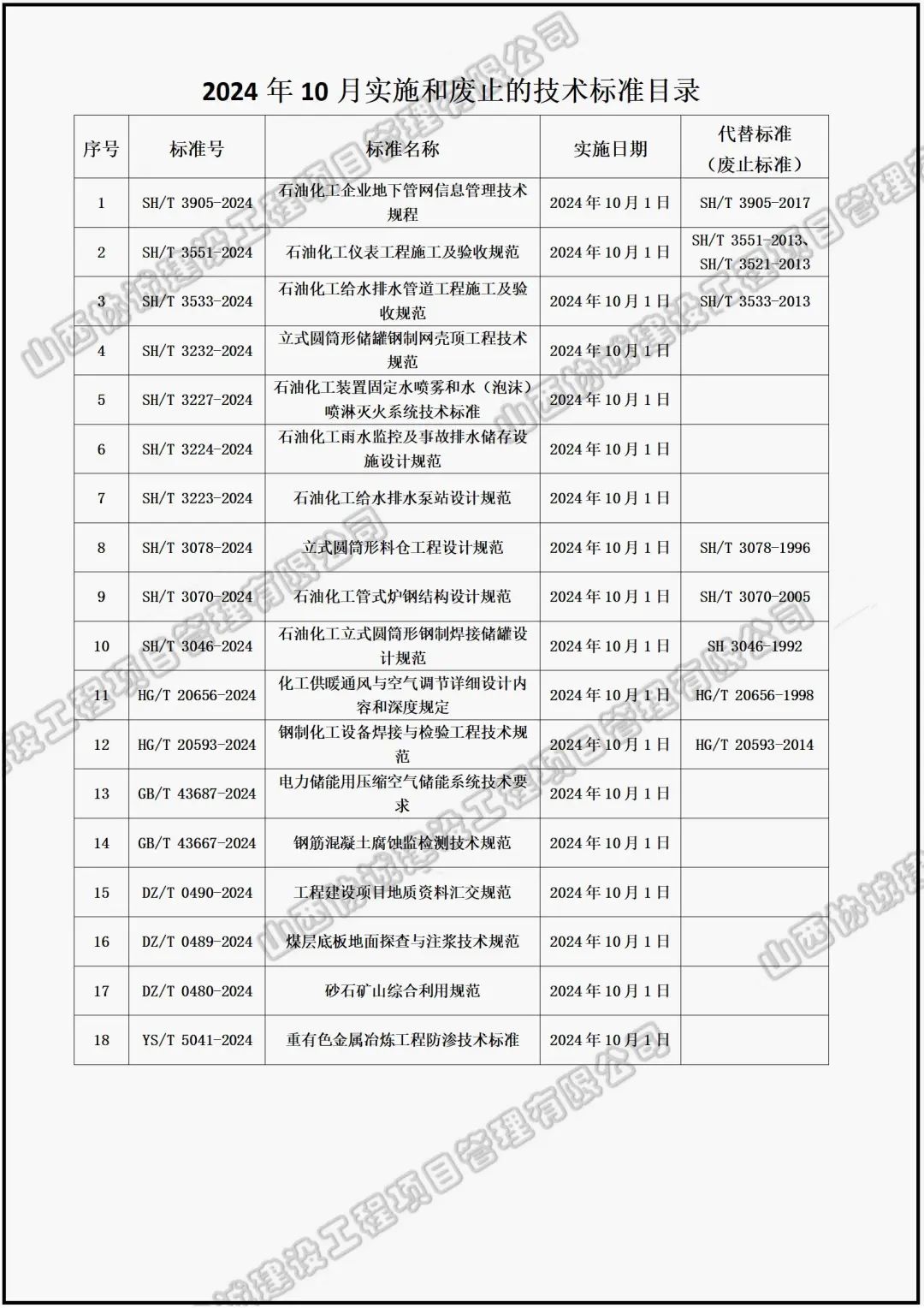 2024年10月實(shí)施和廢止的標(biāo)準(zhǔn)規(guī)范目錄、2024年6~10月實(shí)施和廢止的地方性標(biāo)準(zhǔn)規(guī)范目錄如下,請大家根據(jù)工程實(shí)際需要積極學(xué)習(xí)落實(shí)相關(guān)新標(biāo)準(zhǔn)。