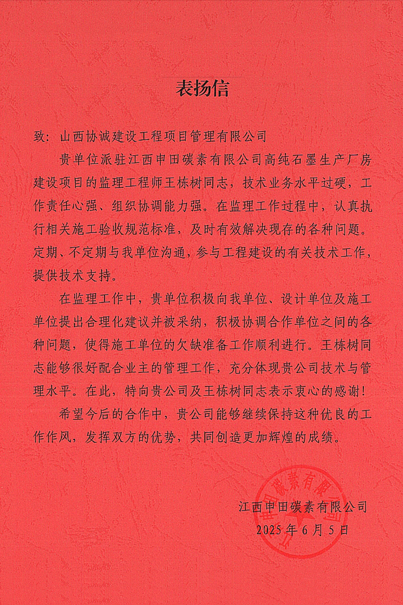 1、喜訊!公司獲得太原市建設(shè)監(jiān)理行業(yè)協(xié)會(huì)授予的“2023-2024年度太原市工程監(jiān)理先進(jìn)企業(yè)”榮譽(yù)稱號(hào)。 2、祝賀!我公司監(jiān)理的山西智能高端裝備產(chǎn)業(yè)園區(qū)基礎(chǔ)設(shè)施建設(shè)及和順縣城市基礎(chǔ)設(shè)施更新一期建設(shè)等三個(gè)項(xiàng)目工程榮獲2024年度“汾水杯”。 3、6月5日,江西申田碳素有限公司致信我公司,對(duì)公司員工王棟樹在監(jiān)理該單位高純石墨生產(chǎn)廠房建設(shè)項(xiàng)目中表現(xiàn)出的過硬的專業(yè)技術(shù)、良好的業(yè)務(wù)能力和認(rèn)真負(fù)責(zé)的敬業(yè)精神給予高度贊揚(yáng),同時(shí)對(duì)公司提供的優(yōu)質(zhì)服務(wù)表示感謝,并授予公司“誠(chéng)信監(jiān)理企業(yè)”榮譽(yù)證書。 4、今年6月是第24個(gè)全國(guó)“安全生產(chǎn)月”,根據(jù)公司“安全生產(chǎn)月活動(dòng)方案”的安排,6月10日,公司舉辦了《建設(shè)項(xiàng)目第三方安全管理》培訓(xùn)。 5、6月17日,太原市住房和城鄉(xiāng)建設(shè)局舉辦2025年太原市房屋建筑工程應(yīng)急救援演練暨建筑施工安全生產(chǎn)標(biāo)準(zhǔn)化現(xiàn)場(chǎng)觀摩會(huì),公司項(xiàng)目管理部主任劉建民參會(huì),觀摩了國(guó)樾府項(xiàng)目施工質(zhì)量樣板以及工藝工法樣板、數(shù)字化應(yīng)用等展示,并在現(xiàn)場(chǎng)互動(dòng)交流了安全生產(chǎn)與工程管理經(jīng)驗(yàn)。 6、6月20日,公司監(jiān)理的空港蘇寧云著項(xiàng)目開展高處墜落事故救援演練的“安全生產(chǎn)月”活動(dòng)。