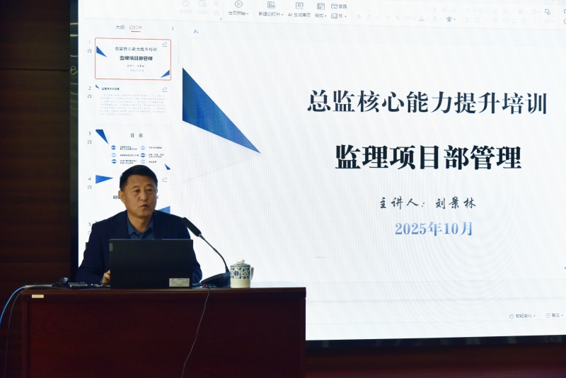 上午課程由公司黨委書記、資深總監(jiān)劉景林主講。劉書記以“高效務(wù)實、廉潔守責(zé)”為主線,結(jié)合規(guī)范要求與二十余年項目管理經(jīng)驗,從機制建設(shè)、執(zhí)行落地、風(fēng)險防控三個維度,系統(tǒng)分享監(jiān)理項目部實戰(zhàn)要領(lǐng):如何開好監(jiān)理會議、如何規(guī)范簽發(fā)審核意見、如何統(tǒng)籌各方關(guān)系、如何守住安全底線等,為學(xué)員提供了一套“拿來即用”的管理工具包。