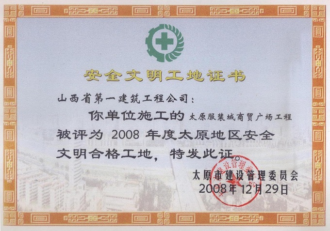 太原服裝城商貿(mào)廣場工程榮獲太原地區(qū)安全文明合格工地
