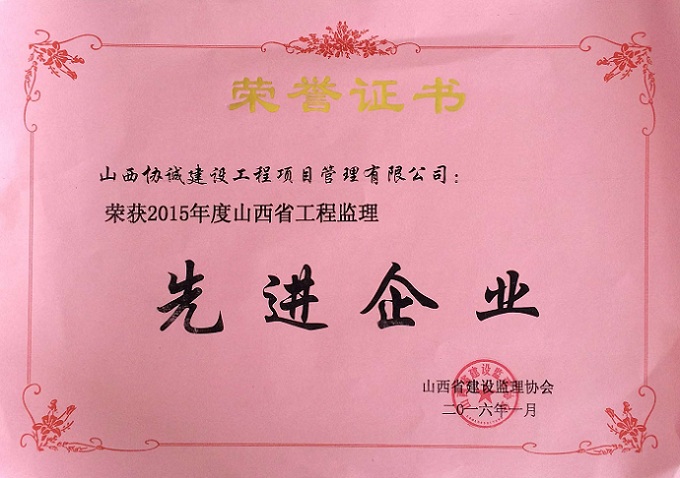 公司榮獲2015年度山西省工程監(jiān)理先進企業(yè)