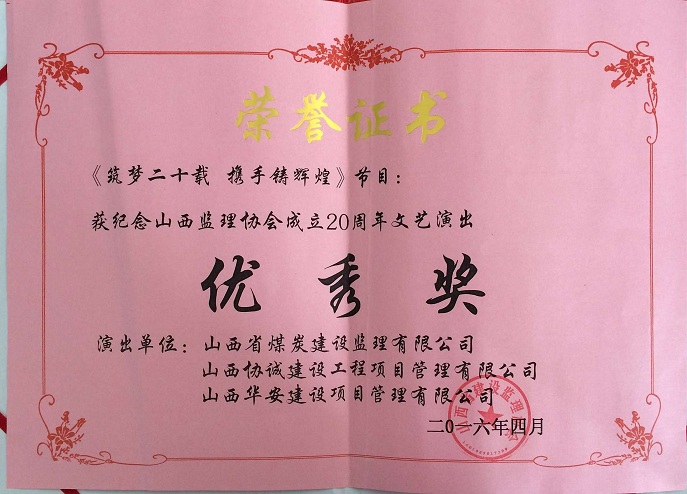 公司榮獲紀念山西監(jiān)理協(xié)會成立20周年文藝演出“優(yōu)秀獎”(2)