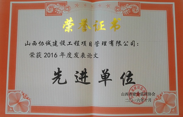 公司榮獲省監(jiān)理協(xié)會(huì)“2016年度發(fā)表論文先進(jìn)單位”榮譽(yù)稱號