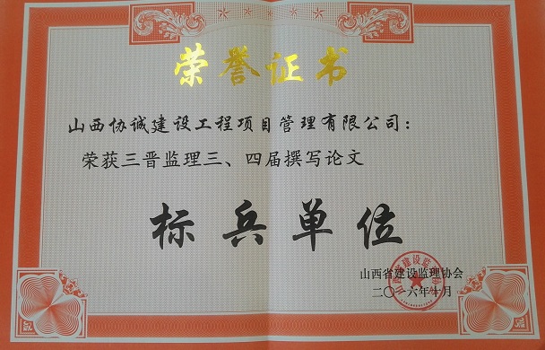 公司榮獲山西省監(jiān)理協(xié)會“三晉監(jiān)理三、四屆撰寫論文標(biāo)兵單位”榮譽稱號