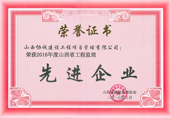 公司榮獲2016年度山西省工程監(jiān)理先進(jìn)企業(yè)