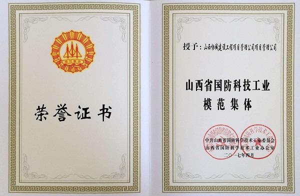 公司榮獲“山西省國防科技工業(yè)模范集體”榮譽(yù)
