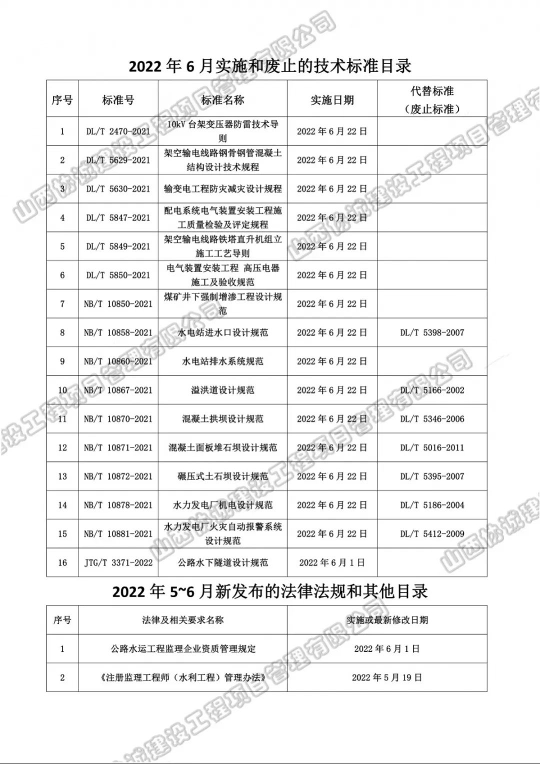 2022年6月實施和廢止的法律法規(guī)、標準規(guī)范目錄如下,請大家根據(jù)工程實際需要積極學習落實相關新標準。