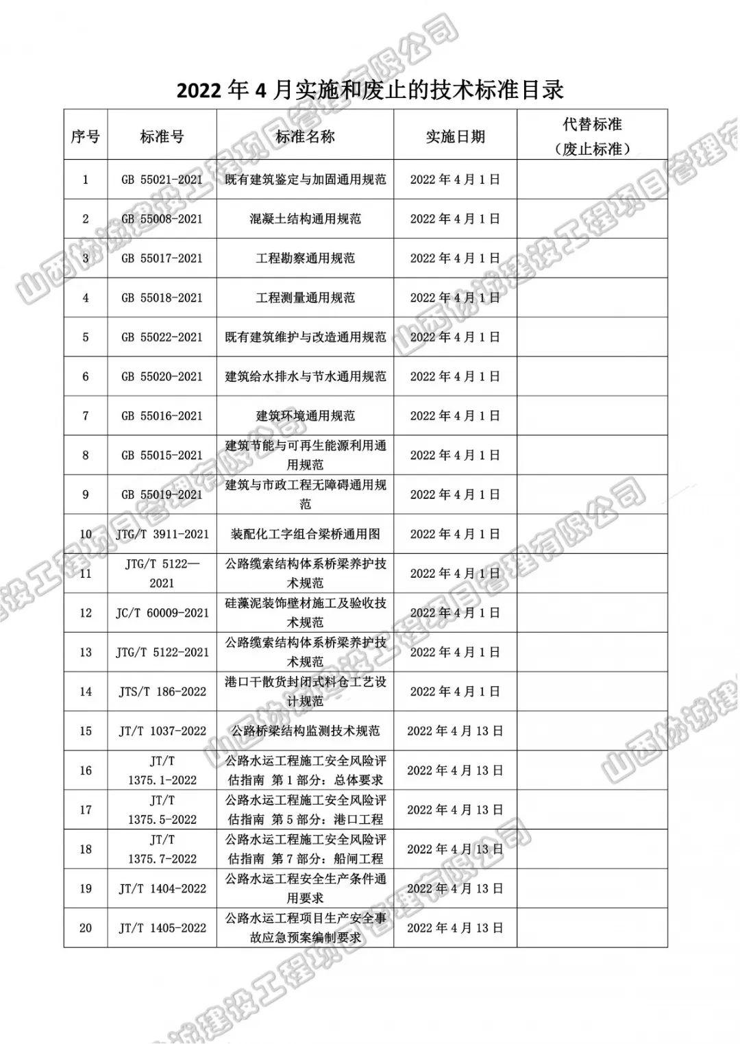2022年4月實施和廢止的法律法規(guī)、標(biāo)準(zhǔn)規(guī)范目錄如下,請大家根據(jù)工程實際需要積極學(xué)習(xí)落實相關(guān)新標(biāo)準(zhǔn)。